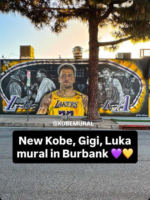此前,有艺术家在街头的墙上制作了科比和东契奇握手的壁画。