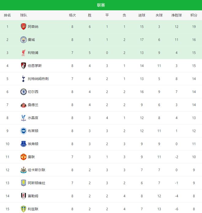 随着阿森纳1-0险胜+曼城2-0完胜,英超最新积分榜:2-7名只差2分