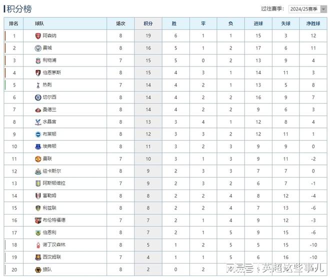 英超最新积分榜:阿森纳客胜3分领跑,曼城3连胜攀升第2!