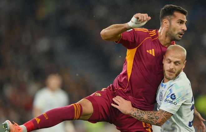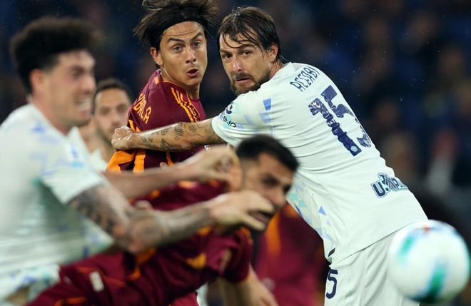 下半场易边再战。第51分钟,邓弗里斯在禁区线上起脚低射,门将迅速落地把球扑出。随后,迪巴拉在禁区左侧小角度射门也是被门将化解。埃尔莫索近距离头球攻门,皮球弹地后飞向球门。门将反应很快把球扑出。第55分钟,罗马获得禁区前沿任意球机会。迪巴拉主罚,他直接射门,门将飞身把球扑出。
