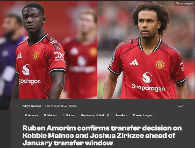 有传闻表示齐尔克泽和梅努将在冬天离开曼联,不过阿莫林在赛前对这样的传闻泼了冷水。