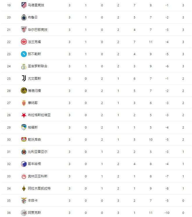 随着切尔西5-1+利物浦5-1+拜仁4-0,皇马1-0尤文,欧冠最新积分榜