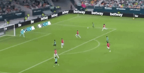 第34分钟,贝莱林送出横敲,安东尼在弧顶先是轻轻一扣,随即左脚兜射远角,皮球划出完美弧线,直奔死角,又是一记世界波,将比分扩大到了2-0,轻轻松松完成梅开二度。